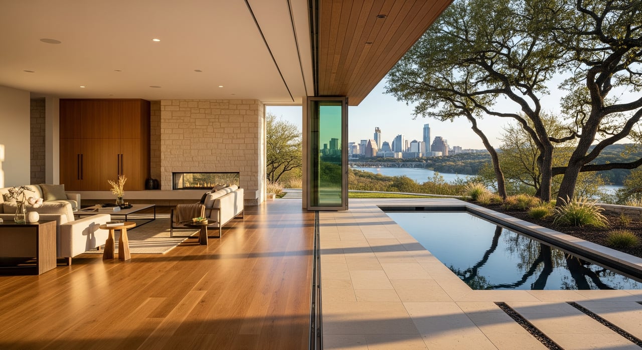 Austin's mild climate makes it an ideal location for indoor-outdoor living designs. Homeowners are creating seamless transitions between indoor and outdoor spaces by using large sliding doors, covered patios, and outdoor kitchens. These spaces are designed for relaxation and entertainment, featuring comfortable seating, fire pits, and lush landscaping. This trend allows residents to enjoy the natural beauty of their surroundings while extending their living areas beyond the confines of their homes.